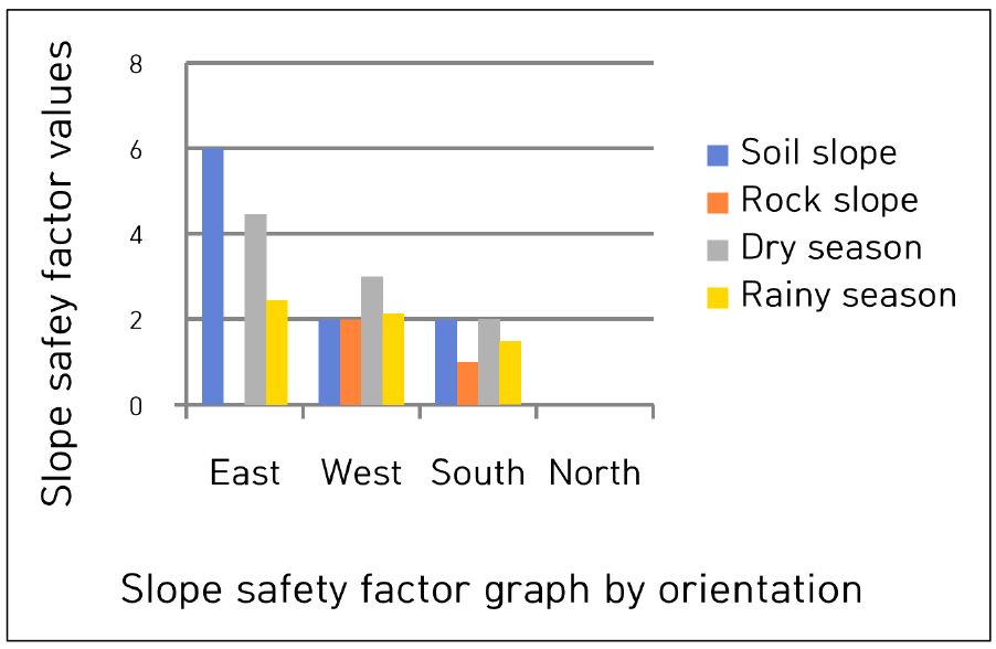 - In Korea, where the four seasons are distinct and the climate has a strong influence, urban roadside slopes are closely connected to citizens' residential areas, which adds to the importance of keeping them safe. At the same time, aging of the facilities installed along roadside slopes is progressing, leading to revisions in related laws and efforts to unify slope maintenance agencies. Against this backdrop, the need for proactive prevention—eliminating risk factors in advance rather than relying on annually repeated maintenance—has emerged. On flat roads, repeated freeze–thaw cycles lower shear strength. Likewise, in the three-dimensional structure of vertically elevated roadside slopes, it is urgently necessary to identify and remove the causes of shear strength reduction due to freeze–thaw cycles. This study was prompted by the observation in the 2021 Seoul Roadside Slope Condition Survey that roadside slopes repeatedly affected by freeze–thaw cycles exhibit consistent patterns closely related to geographical conditions during winter. Based on this, shear strength test results from 21 sites and limit equilibrium analysis results from 29 sites were selected from existing data. By comparing and analyzing the characteristics of these hazardous roadside slopes, the study demonstrates that in climates with distinct seasons, the shear strength of roadside slopes varies depending on the slope orientation.