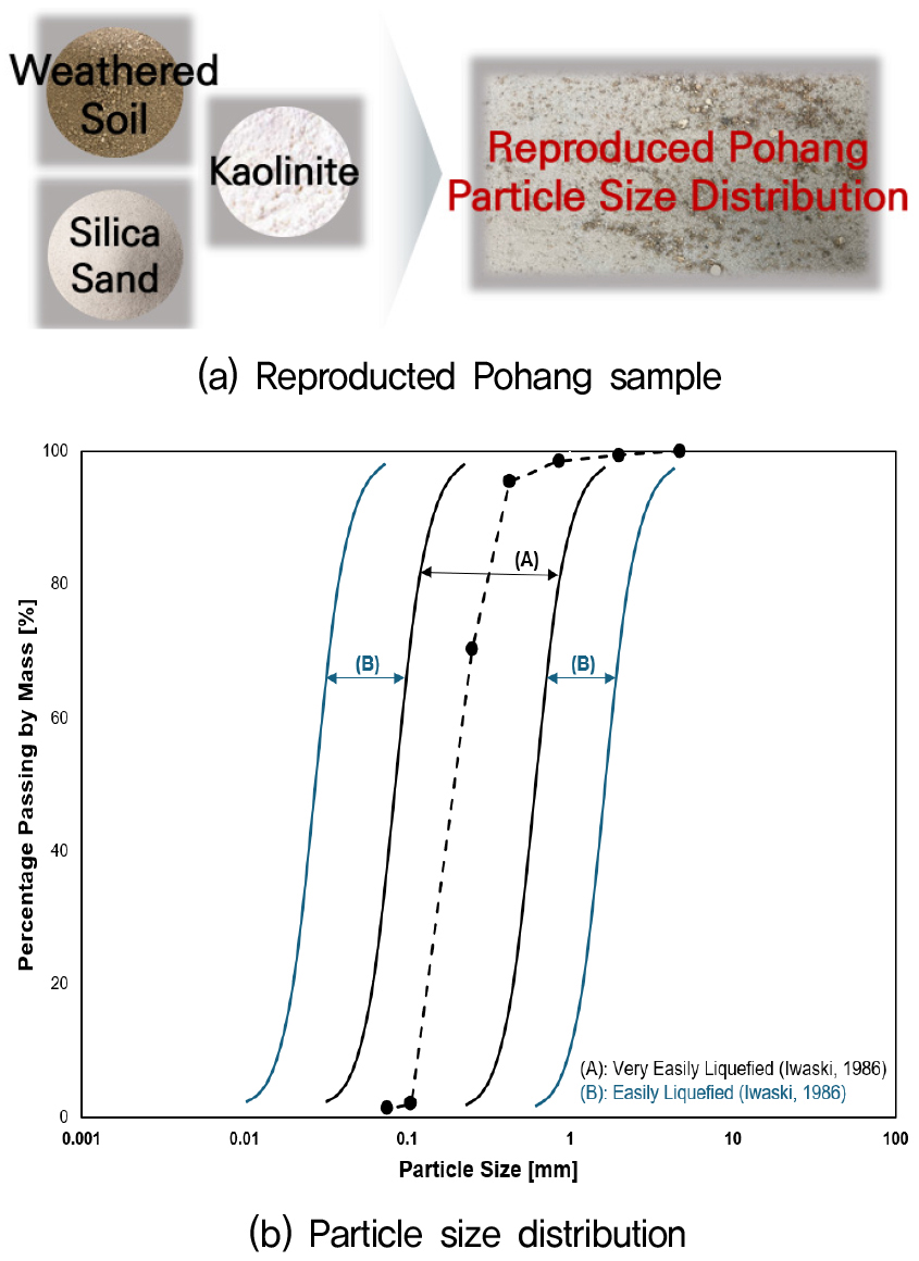 - In many major urban areas of Korea, the surface ground is composed of loose reclaimed and alluvial deposits. In such regions, underground structures such as water and sewage pipelines, gas pipes, communication ducts, power conduits, and drainage boxes, as well as small surface structures, are often constructed with shallow foundations. In these loose ground conditions, soil liquefaction may occur due to insufficient soil strength, construction-induced vibrations, groundwater leakage, or earthquakes. Such phenomena can cause ground subsidence, settlement, and collapse, leading to severe damage to roads and structures. Therefore, ground reinforcement is required to prevent these damages. In this study, unconfined compression tests, shear wave velocity tests, and ground response analyses were conducted on loose sand and reinforced sand to evaluate their strength and dynamic response characteristics. The eco-friendly reinforcing material (GeoCem) developed in this study exhibited higher strength and lower maximum surface acceleration compared to cement-treated sand, indicating superior reinforcement performance. Therefore, using GeoCem as a substitute for cement in ground reinforcement is expected to ensure the stability of the ground and structures in a more economical and environmentally sustainable manner, contributing significantly to carbon neutrality.