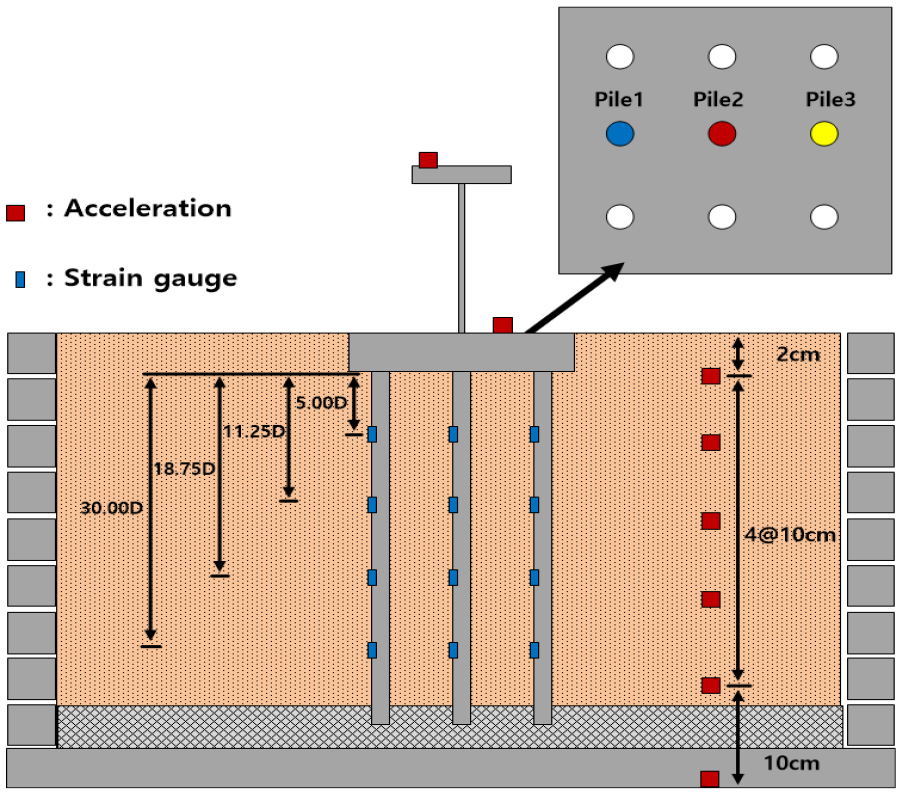 - Dynamic p–y curves, which are used to predict the dynamic behavior of piles, have mainly focused on the frequency characteristics of seismic waves and the relative density of soils. However, limited research has considered the influence of particle size and distribution, which are key factors affecting the dynamic properties of soils. In this study, 1g shaking table tests were performed on pile groups installed in sandy grounds with varying grain size distributions to examine their effect on the dynamic behavior of pile groups subjected to seismic loading. The results demonstrated that relative density and grain size distribution parameters, namely the uniformity coefficient and effective grain size significantly influence the dynamic p–y curves of the pile groups, as well as their maximum lateral displacement, bending moment and shear force.