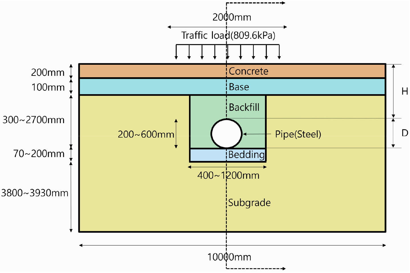 도시 기반 시설의 핵심 구성 요소인 매설관 중 도로포장 하부에 매설된 열수송관의 거동을 규명하기 위해 매설깊이비(H/D), 매설관 직경(D), 되메움층의 열화율을 변수로 설정하여 …